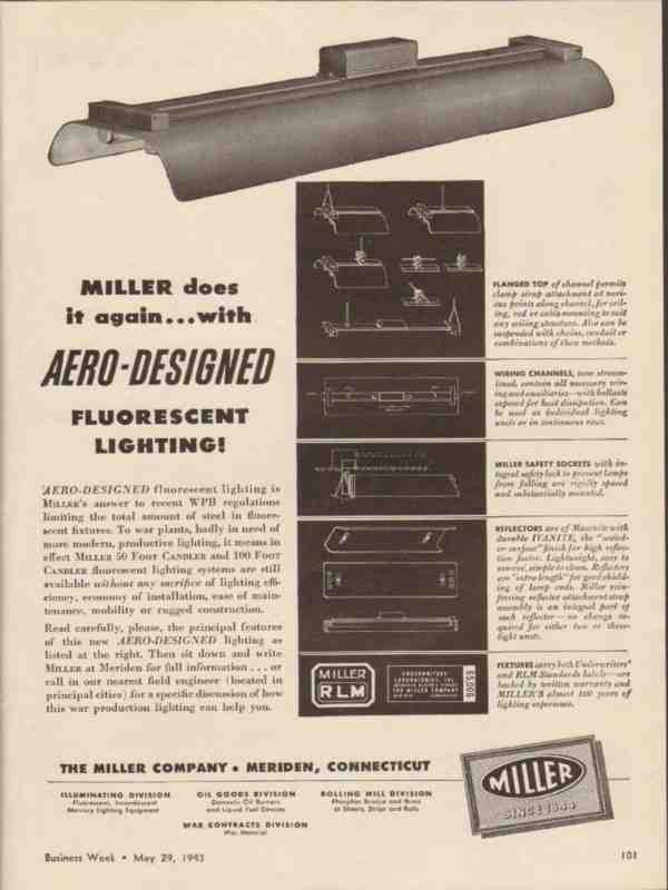 miller company 1943 aero-designed fluorescent lighting vintage ad