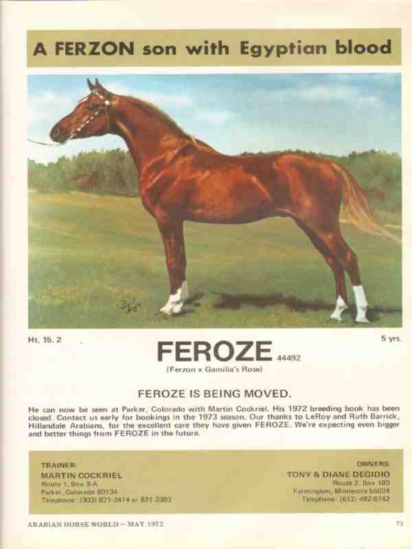hillandale arabians 1972 feroze ferzon gamilas rose horse vintage ad