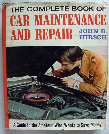 Hard covered book titled THE COMPLETE BOOK OF CAR MAINTENANCE AND REPAIR A Guide to the Amateur Who Wants to Save Money by John D. Hirsch, 1973. 404 pages.