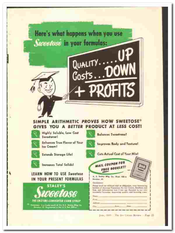 A E Staley Mfg Company 1949 vintage ice cream ad Sweetose profits