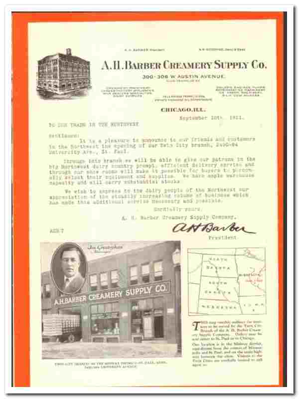 A H Barber Creamery Supply Company 1921 vintage ice cream ad Twin City