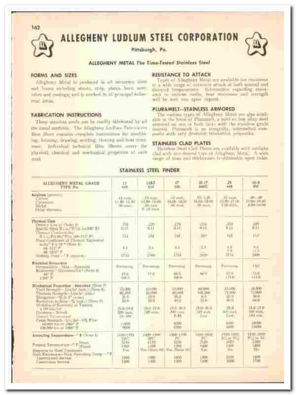 Allegheny Ludlum Steel Corp 1942 vintage metal catalog Stainless food