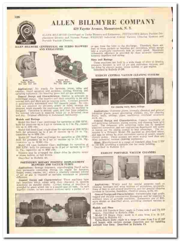 Allen Billmyre Corp 1942 vintage industrial catalog blowers exhausters