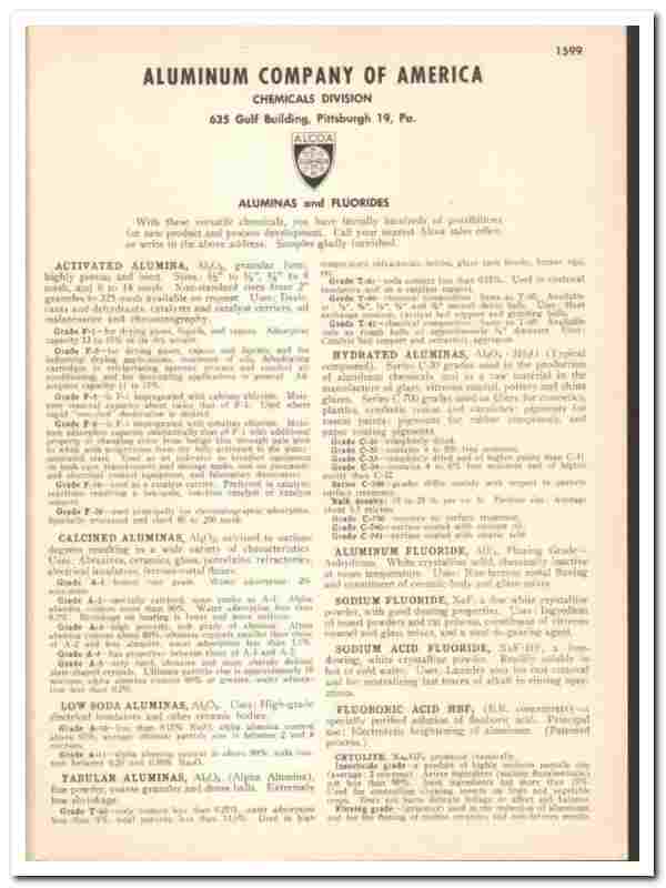 Aluminum Company America 1948 vintage metal catalog Alumina Fluoride