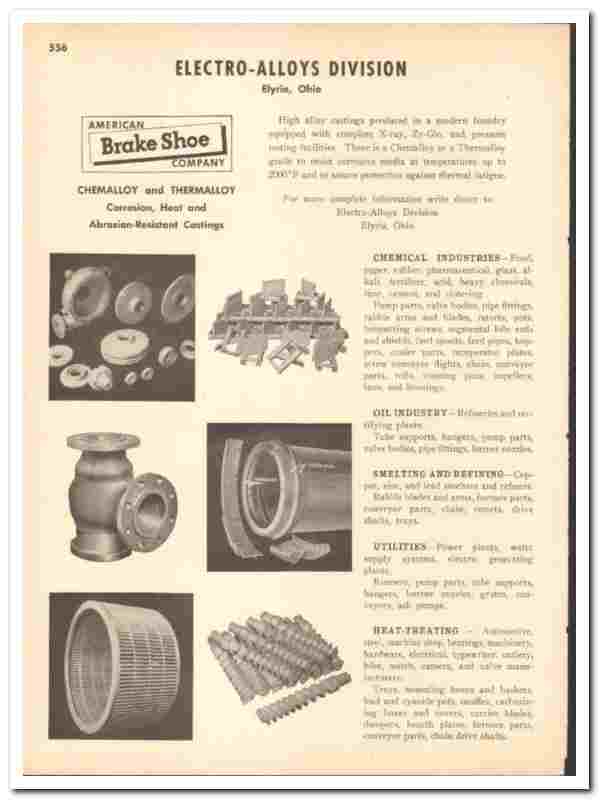 Original 1948 industrial trade vintage catalog for the AMERICAN BRAKE SHOE COMPANY. (Electro-Alloys Division). Main office and plant were located in Elyria, OH.