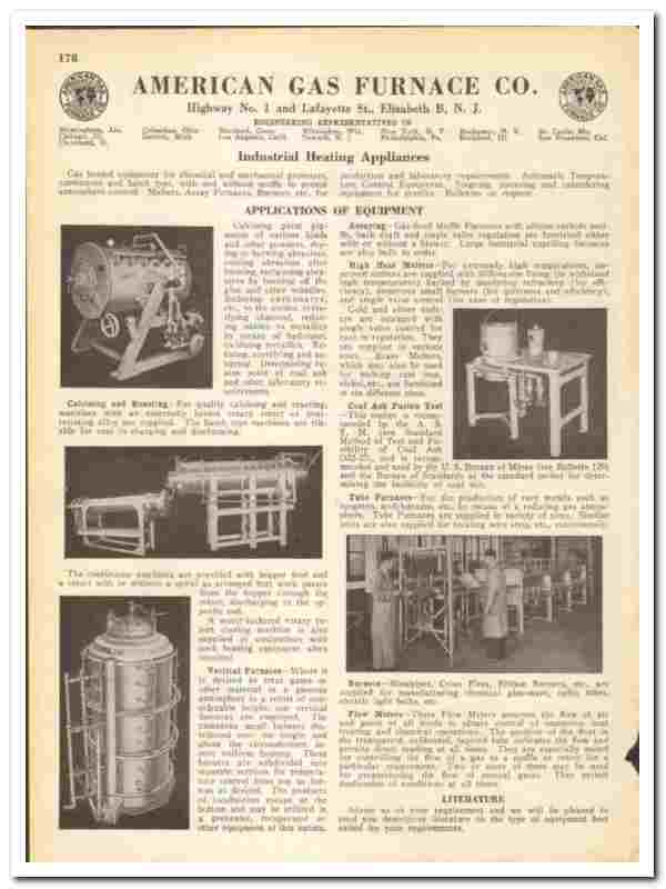 Original 1945 industrial heating trade vintage catalog for the AMERICAN GAS FURNACE COMPANY. Main office and plant were located on Highway No. 1 at Lafayette Street, Elizabeth, NJ.