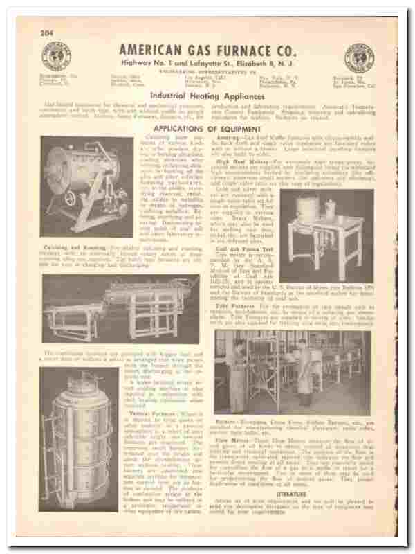 Original 1948 industrial heating trade vintage catalog for the AMERICAN GAS FURNACE COMPANY. Main office and plant were located at Highway No. 1 and Lafayette Street, Elizabeth, NJ. (Established 1878).