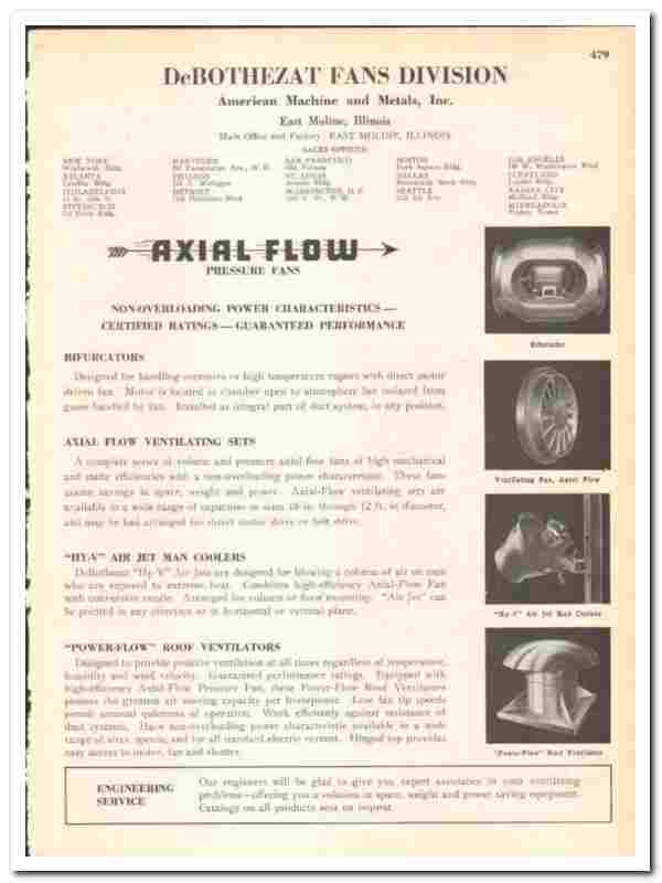 American Machine Metals Inc 1945 vintage catalog DeBothezat Fans axial