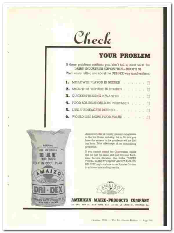 American Maize Products Company 1938 vintage ice cream ad Dri-Dex