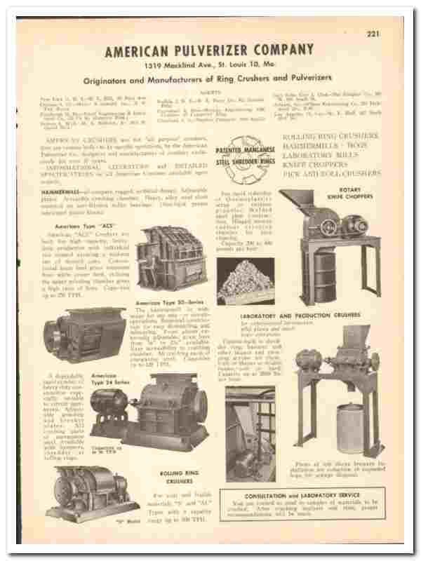Original 1948 industrial trade vintage catalog for the AMERICAN PULVERIZER COMPANY. Main office and plant were located at 1319 Macklind Avenue, St Louis, MO.