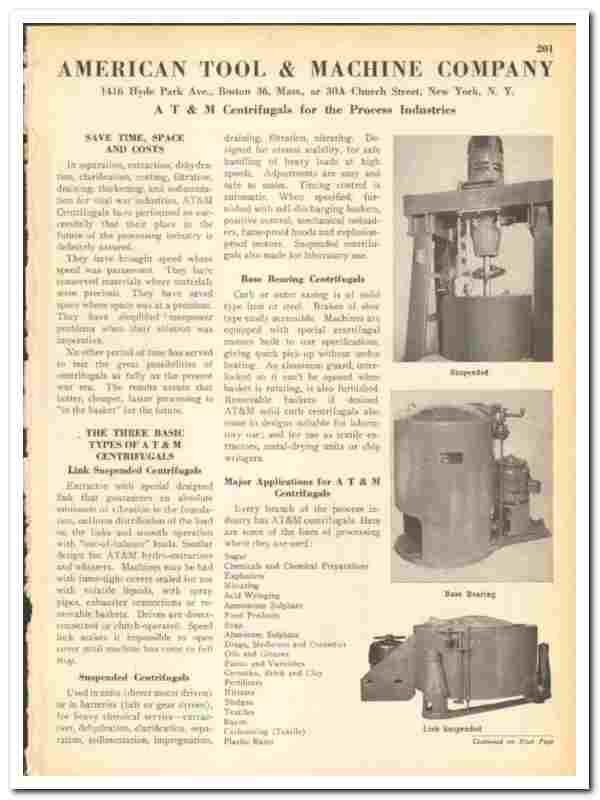 Original 1945 industrial trade vintage catalog for the AMERICAN TOOL & MACHINE COMPANY. Main office and plant were located at 1416 Hyde Park Avenue, Boston, MA. and 30A Church Street, New York, NY.