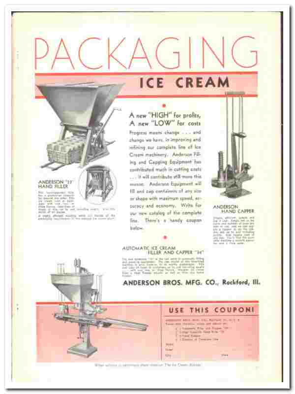 Anderson Bros Mfg Company 1934 vintage ice cream ad Filler packaging