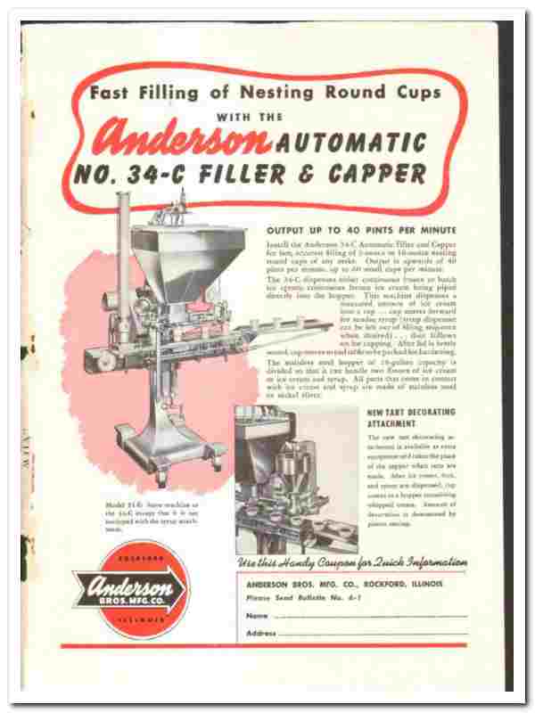 Anderson Bros Mfg Company 1949 vintage ice cream ad Filler Capper