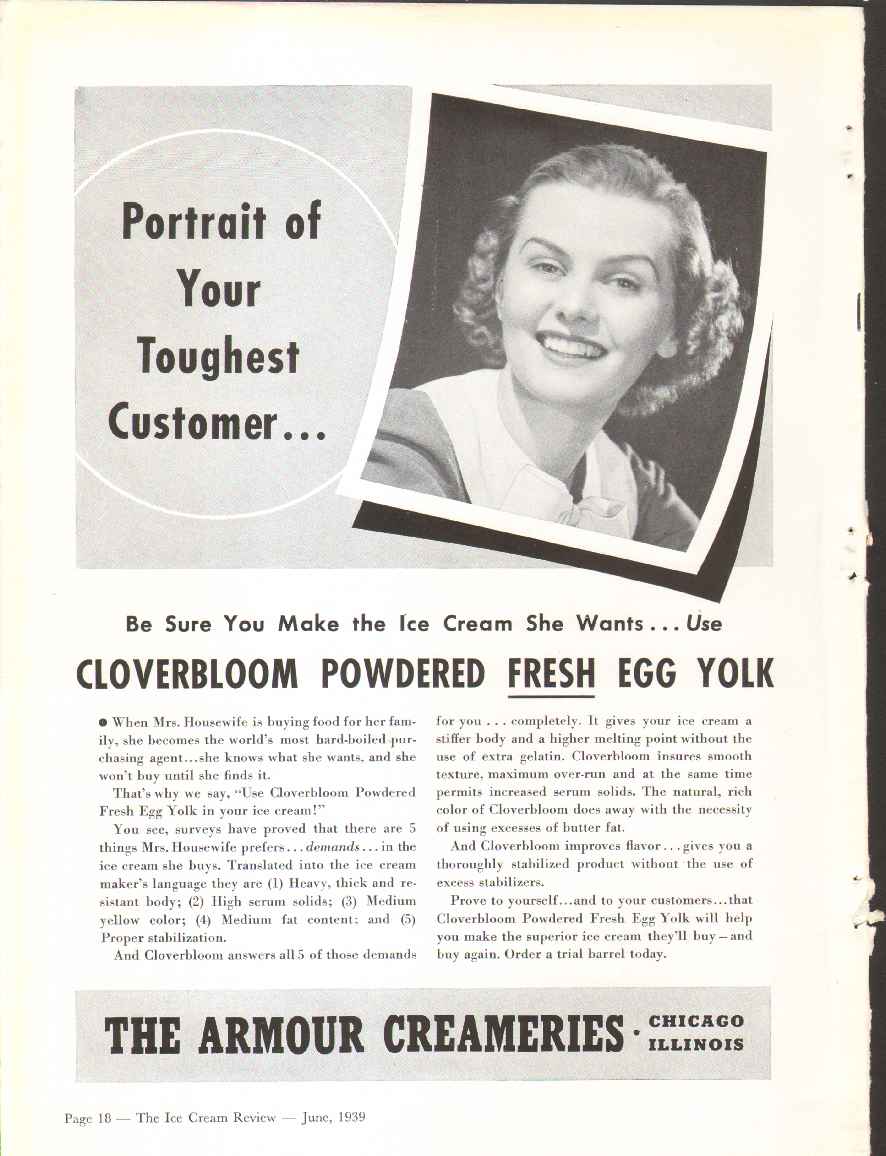 Manufacturers of Cloverbloom Powdered Fresh Egg Yolk for Ice Cream. 'Portrait of Your Toughest Customer'.
