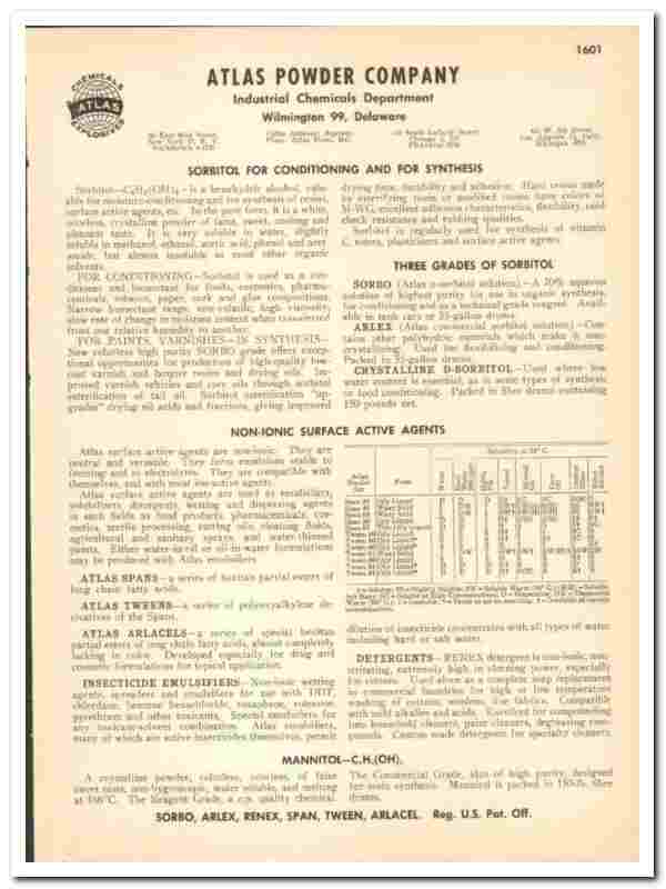Atlas Powder Company 1948 vintage industrial catalog Sorbitol