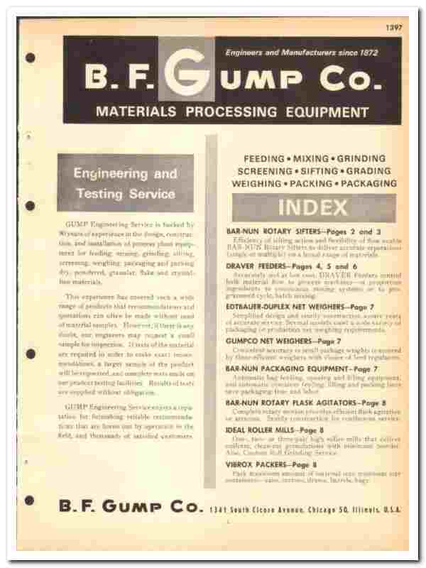 B F Gump Company 1960 vintage industrial catalog mixing feeder Bar-Nun