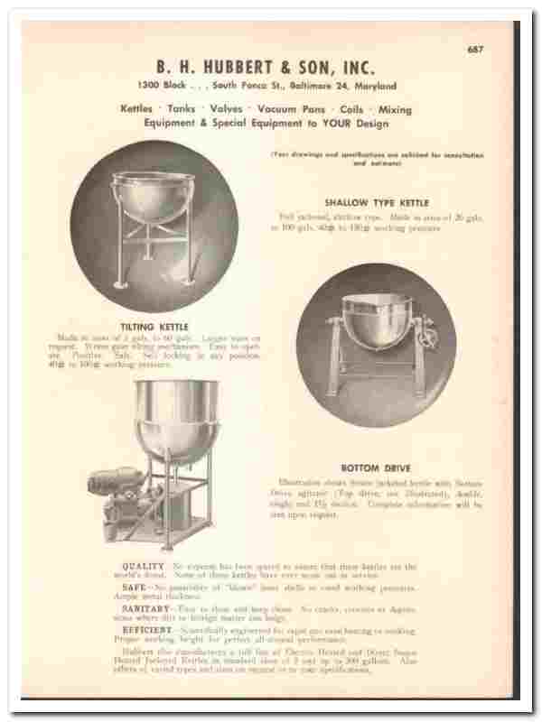 B H Hubbert Son Inc 1947 vintage industrial catalog kettles