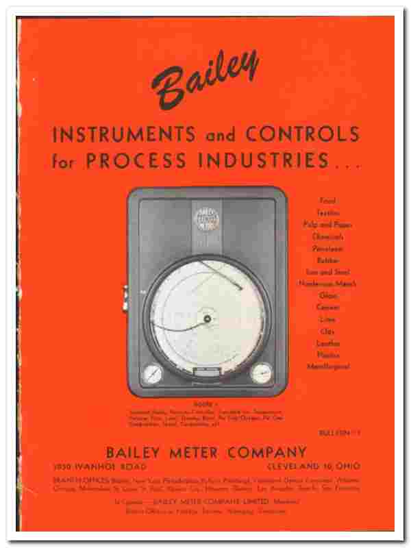 Original 1947 industrial trade vintage catalog for the BAILEY METER COMPANY. Main office and plant were located at 1050 Navahoe Road, Cleveland, OH.