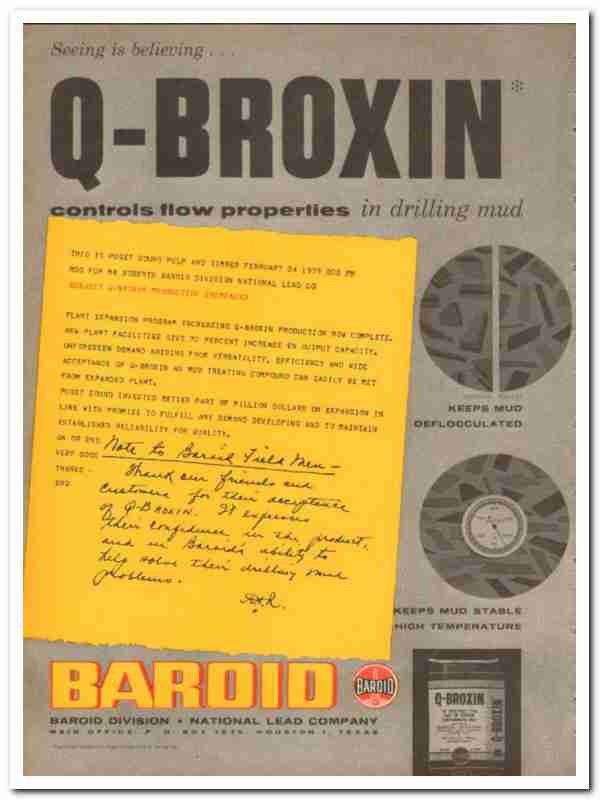 National Lead Company 1959 Vintage Ad Oil Baroid Control Flow Q-Broxin