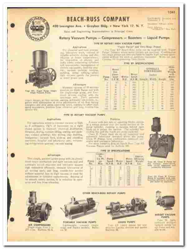 Beach-Russ Company 1947 vintage industrial catalog pumps compressor