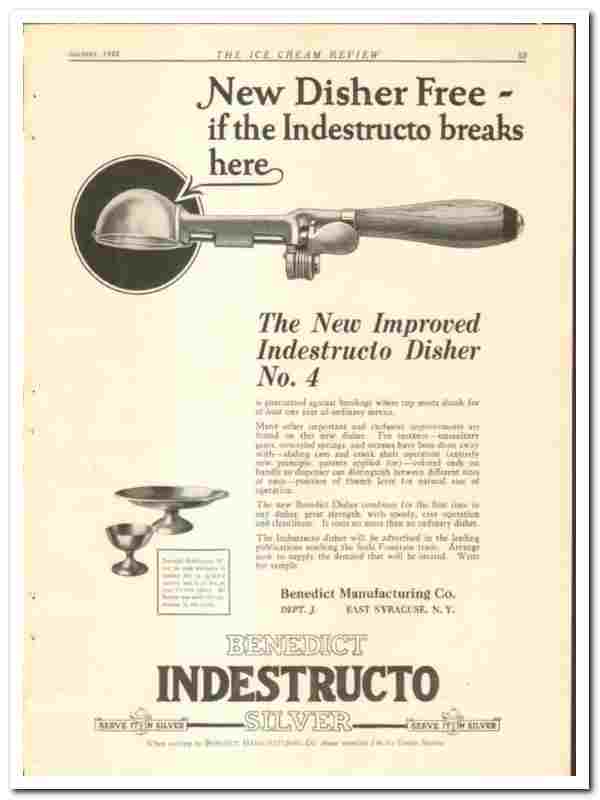 Benedict Mfg Company 1928 vintage ice cream ad Indestructo disher