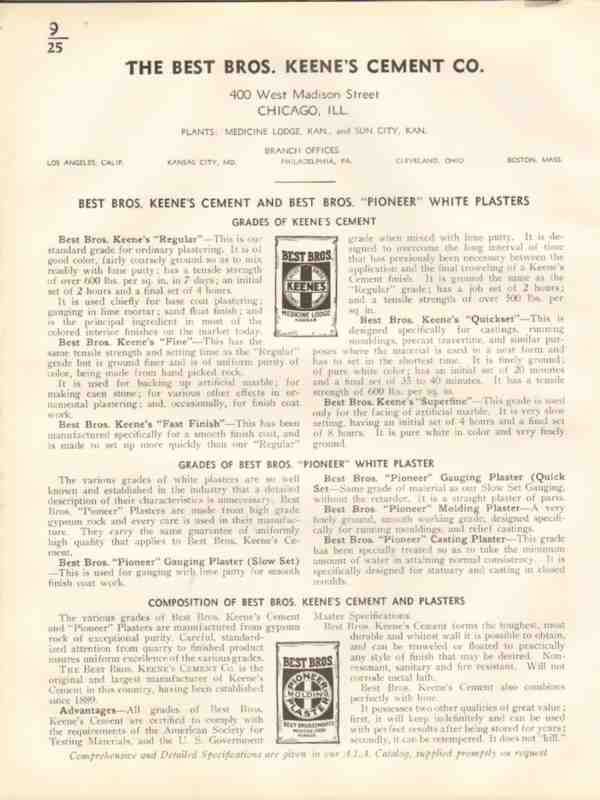 Best Bros Keenes Cement Company 1938 Vintage Catalog Pioneer Plasters