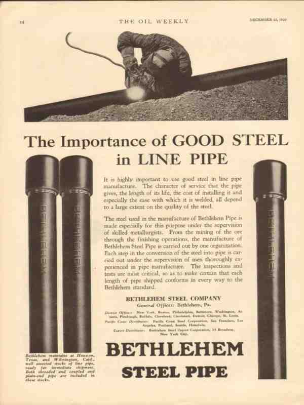 bethlehem steel company 1930 importance good line pipe oil vintage ad
