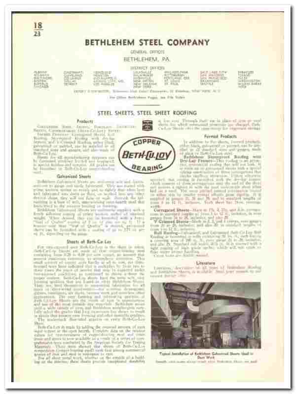 Bethlehem Steel Company 1939 vintage roofing catalog Beth-Cu-Loy sheet