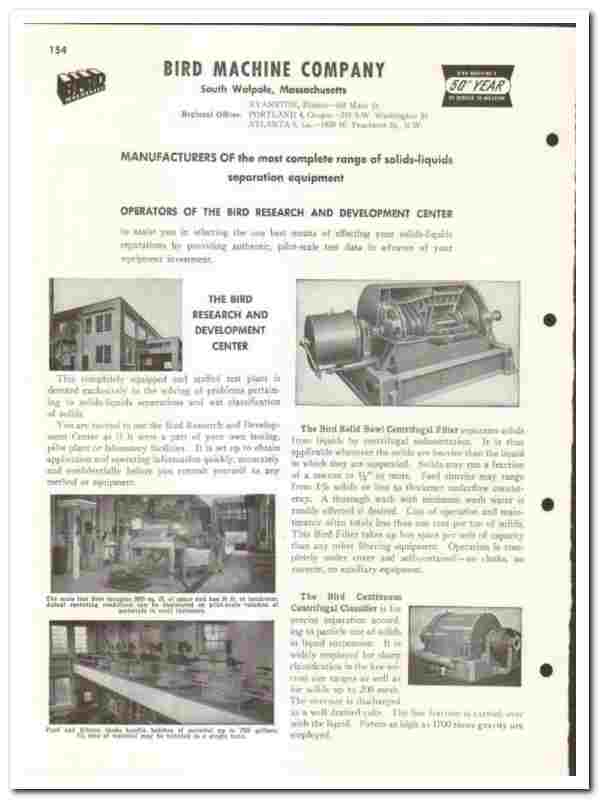 Bird Machine Company 1948 vintage catalog Centrifugal Filter