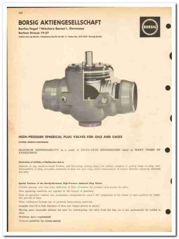 Original 1963 Oil and Gas trade vintage catalog for the BORSIG AKTIENGESELLSCHAFT. Main office and plant was located in Berlin-Tegel (Western Sector), Germany.