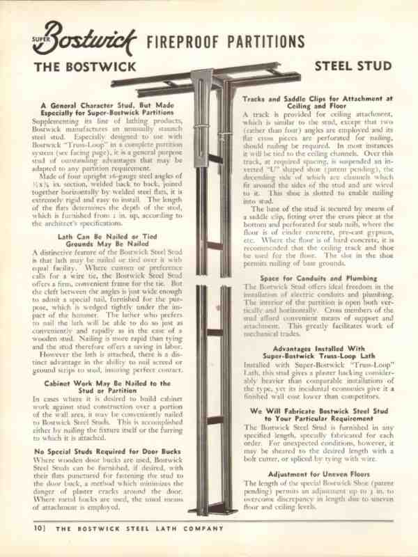 Bostwick Steel Lath Company 1938 Vintage Catalog Metal Truss-Loop Stud