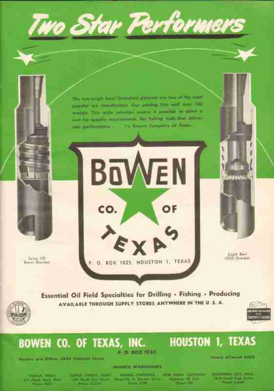 Bowen Company Texas Inc 1951 Vintage Ad Oil Field Well Drilling Tools