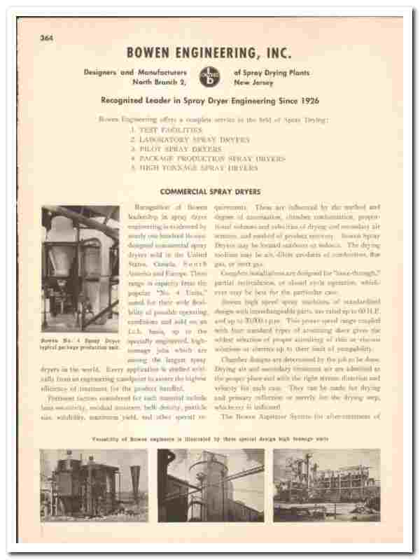Bowen Engineering Inc 1948 vintage industrial catalog spray dryers