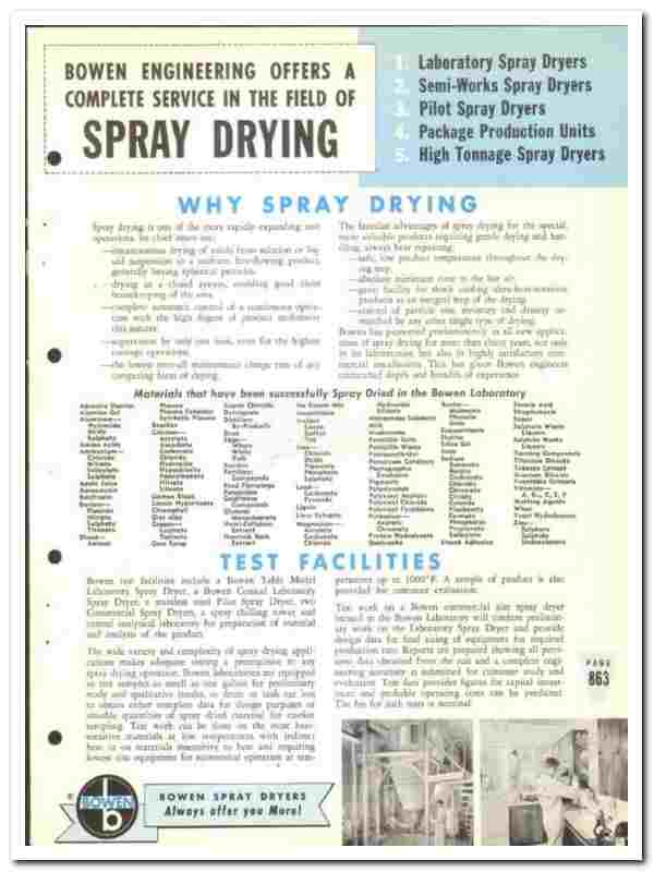 Bowen Engineering Inc 1960 vintage industrial catalog Spray Drying