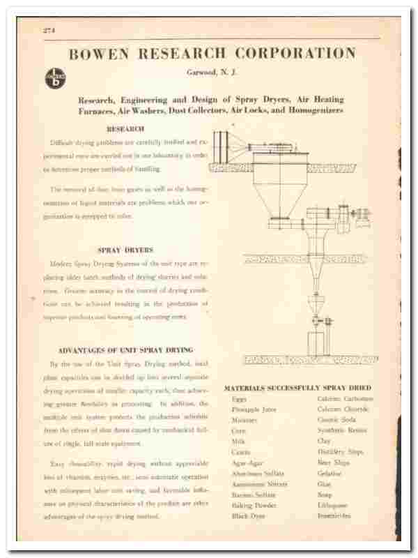 Bowen Research Corp 1942 vintage industrial catalog spray dryers