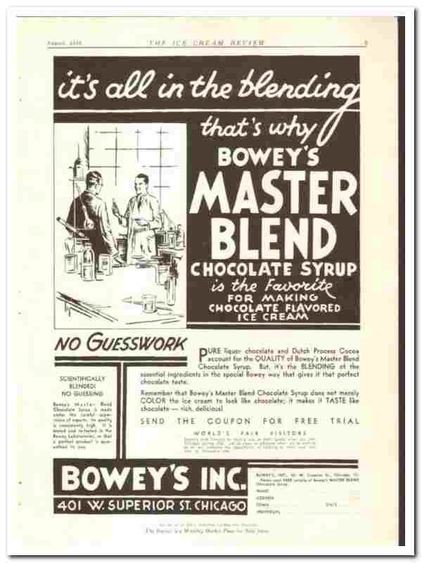 Boweys Inc 1933 vintage ice cream ad Master Blend Chocolate Syrup