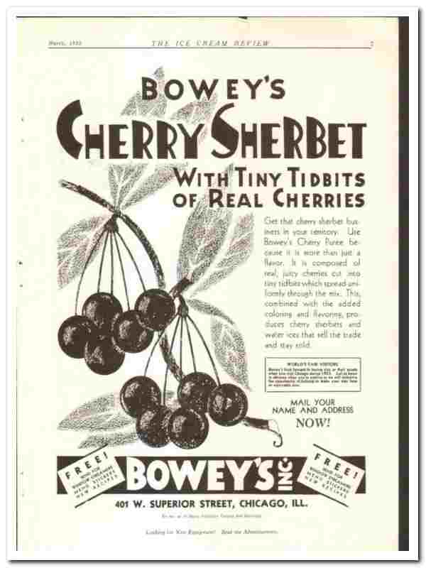 Boweys Inc 1933 vintage ice cream ad Cherry Sherbet real cherries