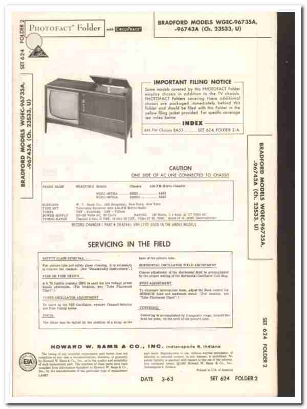 bradford models wgec-96735a 96743a tv television sams photofact manual