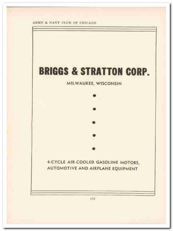Original WW2 wartime vintage ad for BRIGGS AND STRATTON CORPORATION.  4-Cycle Air Cooled Gasoline Motors, Automotive and Airplane Equipment manufactured.