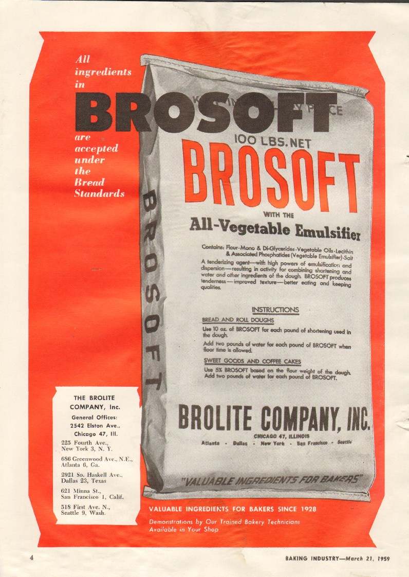 brolite company 1958 brosoft emulsifier bread standards vintage ad