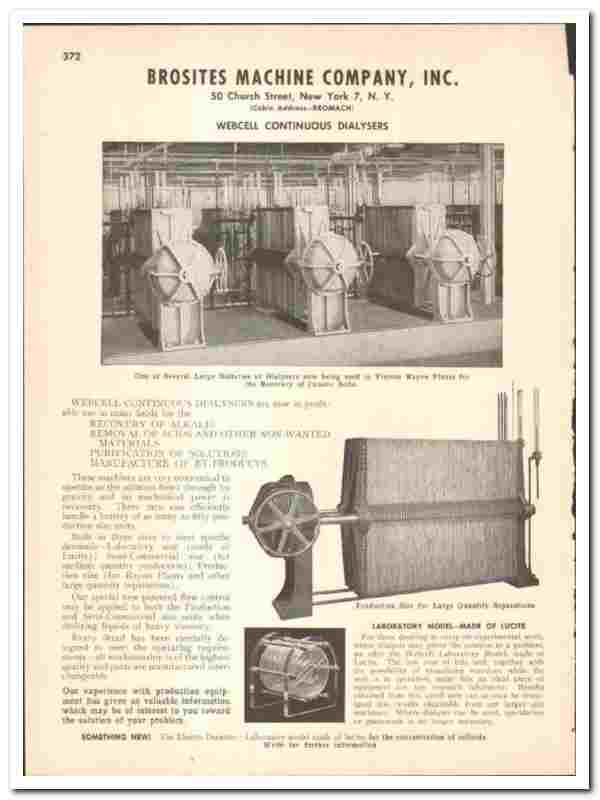 Brosites Machine Company 1947 vintage industrial catalog Dialysers