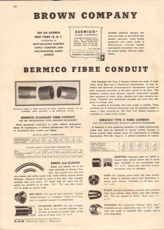 Brown Company 1948 Vintage Catalog Electrical Bermico Fibre Conduit