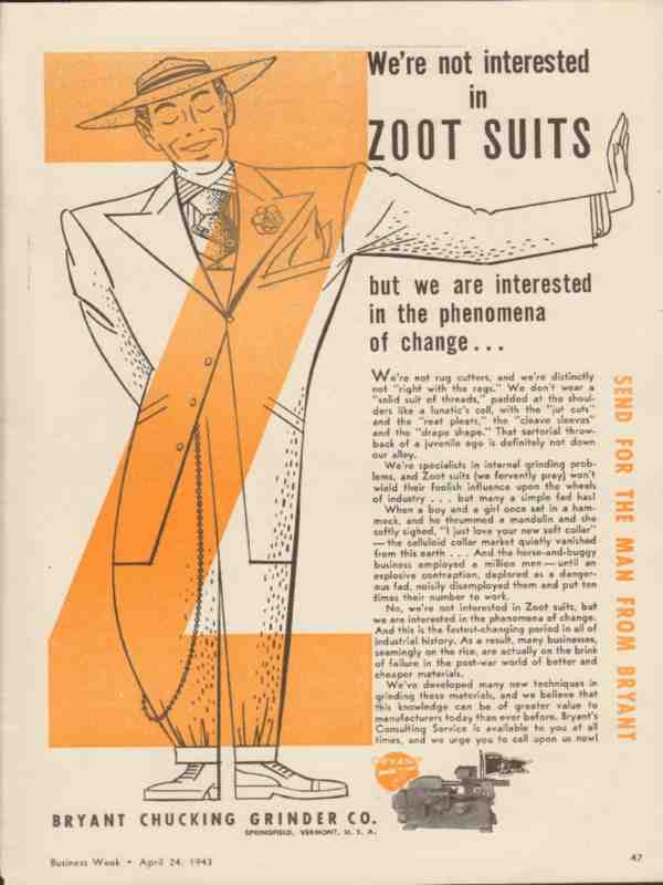 bryant chucking grinder co 1943 not interested zoot suits vintage ad
