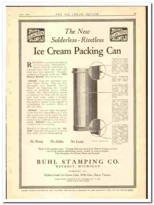 Buhl Stamping Company 1924 vintage ice cream ad packing cans