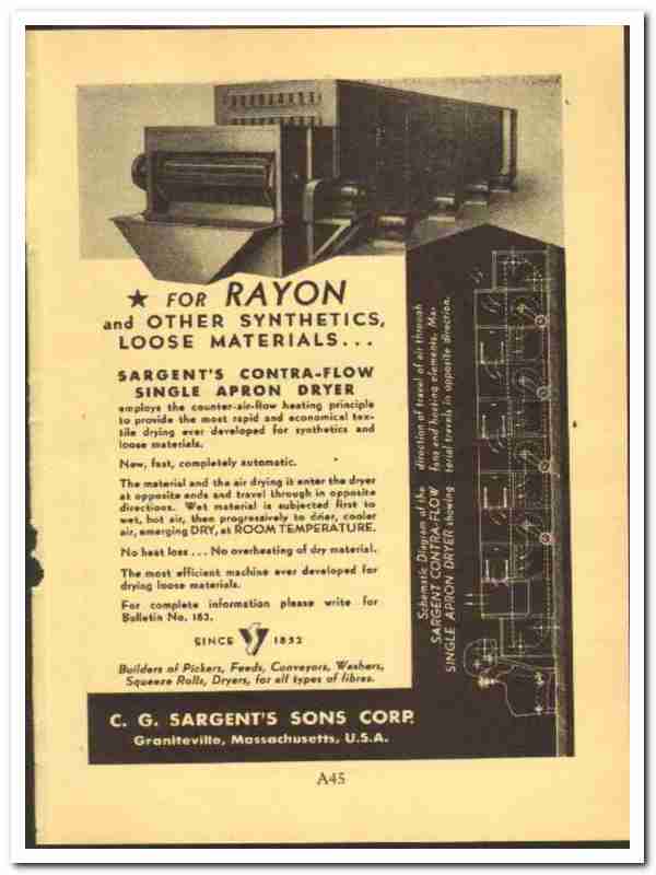 C G Sargents Sons Corp 1952 vintage textile ad rayon air-flow dryer