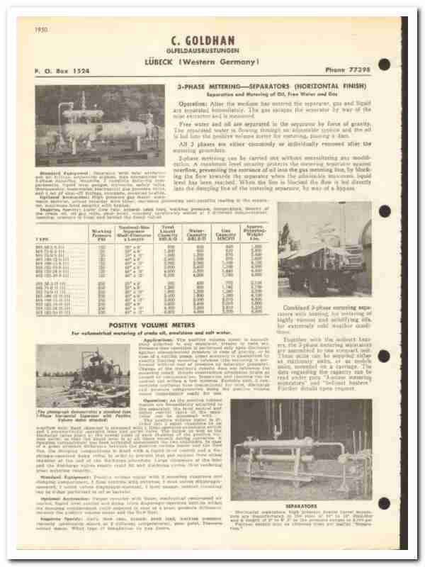 Olfeldausrustungen GmbH 1984 Vintage Catalog Oil C Goldhan Separators