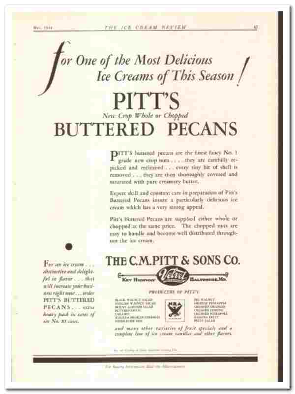 C M Pitt Sons Company 1934 vintage ice cream ad Buttered Pecans