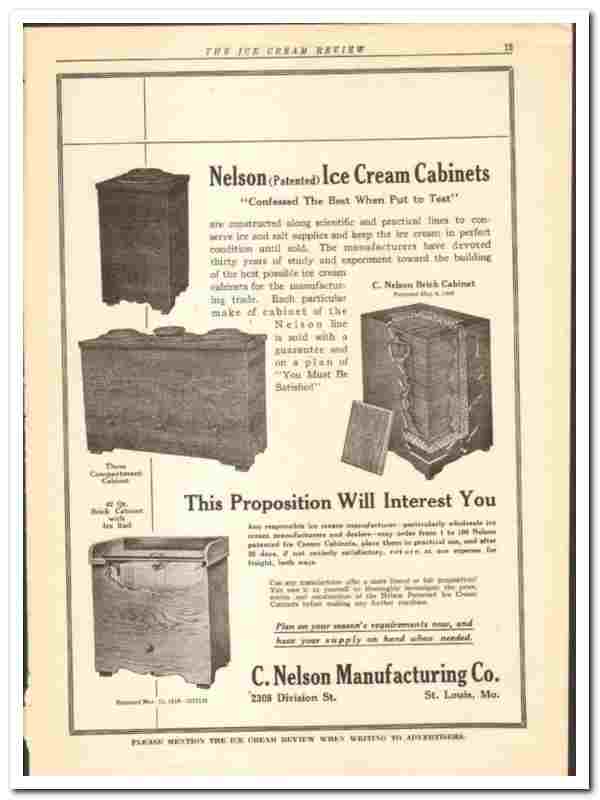 C Nelson Mfg Company 1920 vintage ice cream ad cabinets brick