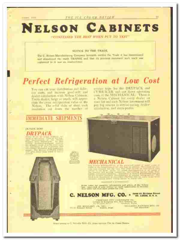 C Nelson Mfg Company 1933 vintage ice cream ad cabinets efficient