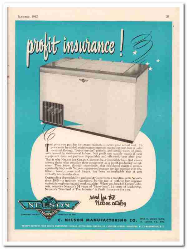 C Nelson Mfg Company 1952 Vintage Ad Ice Cream Cabinet Profit